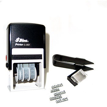 Práctico Fechador Automático con bandas de goma intercambiables, el cual sirve para timbrar diferentes tipos de papel.