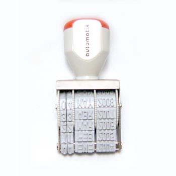 Práctico Timbre Fechador Manual con bandas de goma intercambiables.