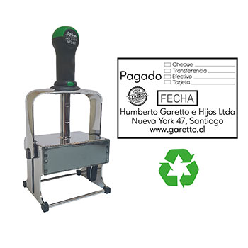 Práctico Timbre Fechador Automático con bandas de goma intercambiables, el cual sirve para timbrar diferentes tipos de papel. Es apto para alto tráfico. Su tampón alcanza para mas de 10.000...